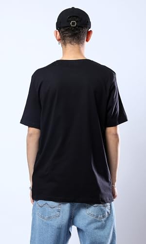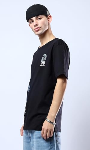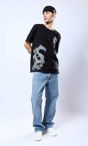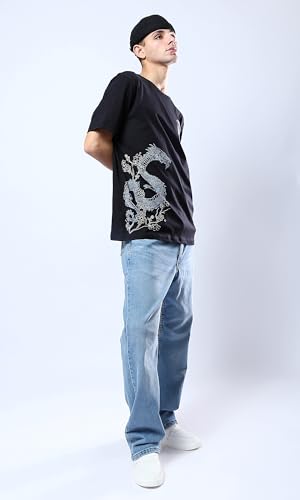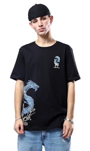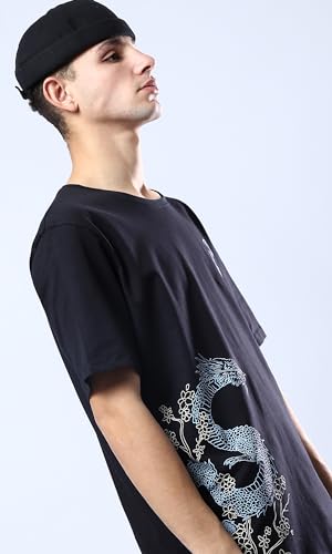 Ravin - تيشرت برقبة دائرية ضيقة مع طبعة تنين للرجال من ريفين، لون أسود، مقاس صغير جدًا XS