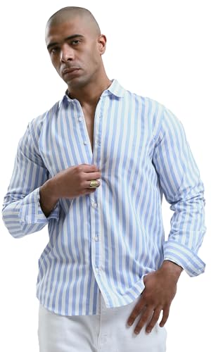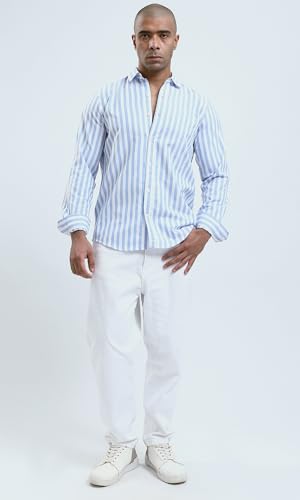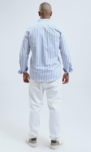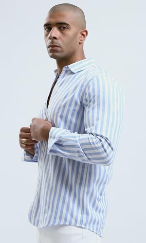 Ravin - قميص أنيق مخطط بأكمام طويلة للرجال من ريفين - أزرق وأبيض