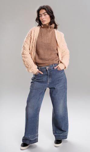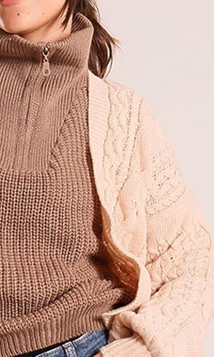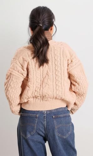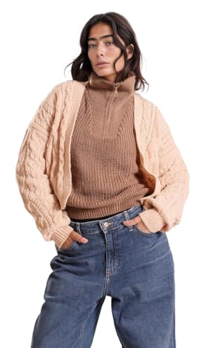 Ravin - كارديجان من رافين بموك رقبة للنساء، فضفاض بأكمام طويلة، منسوج من كابل، لون كريمي، مقاس صغير