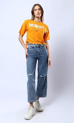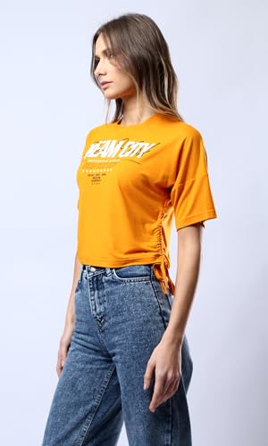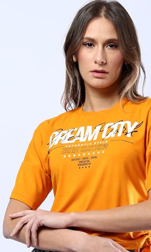 Ravin - تيشرت مريح بأكمام قصيرة مطبوع عليه كلمة "Dream City" بلون برتقالي من ريفين
