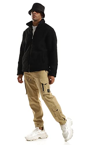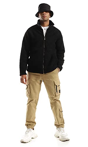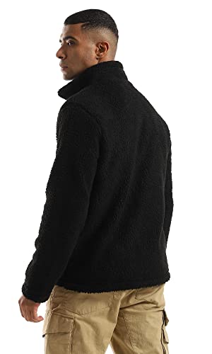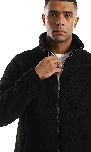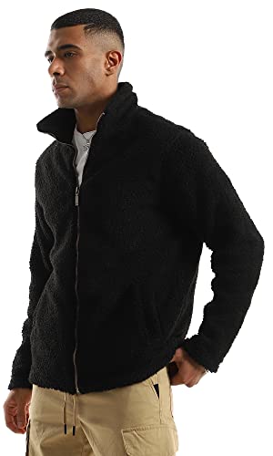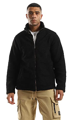 Ravin - جاكيت فرو مريح برقبة بسوستة كاملة وجيوب جانبية من ريفين، لون اسود
