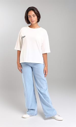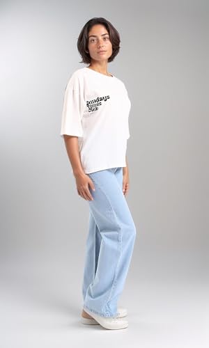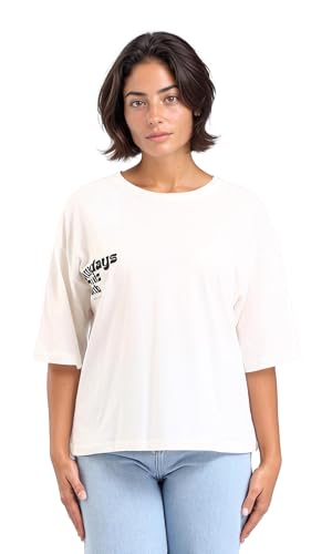Dsisskai - تيشرت قطن مطبوع برقبة دائرية ضيقة للنساء من ريفين - اوف وايت، ابيض، مقاس M