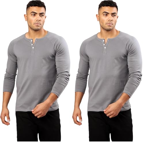 Ravin - تيشرت هينلي بأزرار علوية وأكمام طويلة للرجال من ريفين، لون رمادي، مقاس ميديوم، عبوة من قطعتين