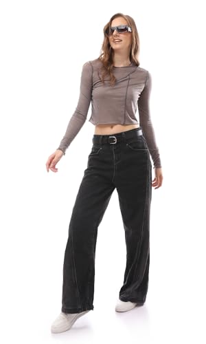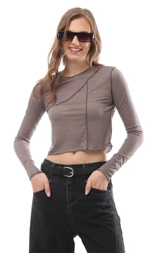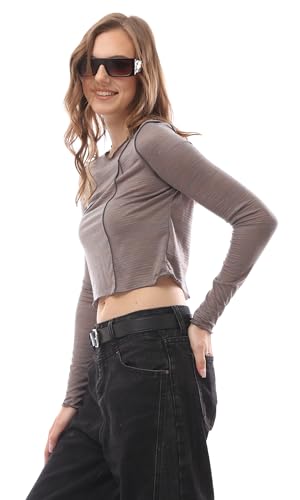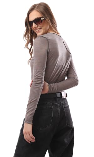Ravin - بلوزة منفوشة بأكمام طويلة وحواف ملفوفة للنساء من ريفين، متعددة الألوان، لون رمادي مرقش، مقاس لارج L