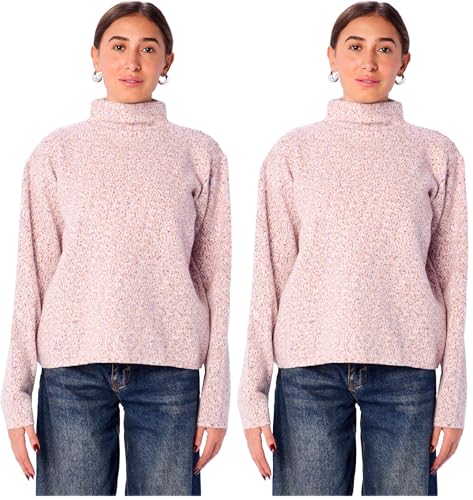 Ravin - بلوفر بأكمام طويلة ورقبة دائرية عالية من ريفين - بلوفر للنساء بلون اوف وايت، أبيض، L (عبوة من قطعتين)