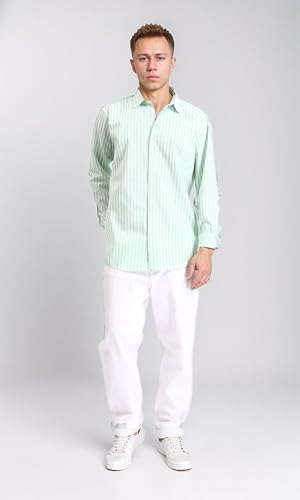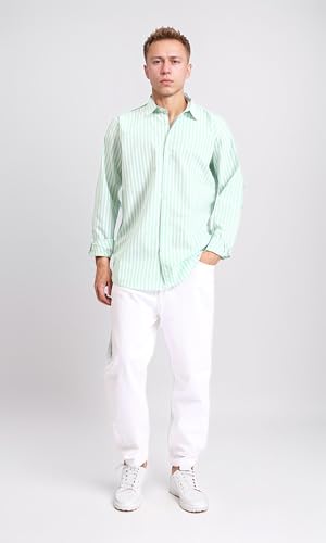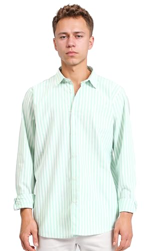 Dsisskai - قميص كاجوال مخطط باكمام طويلة للرجال من ريفين - اخضر فاتح وابيض، متعدد الالوان، مقاس XL