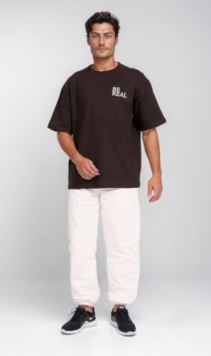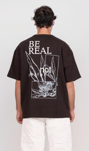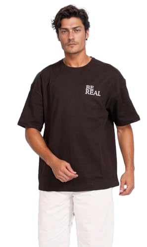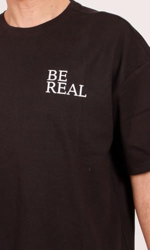 Ravin - ريفين تيشيرت عصري كبير الحجم مطبوع عليه عبارة Be Real للرجال