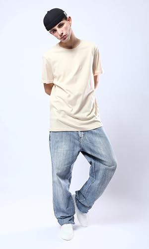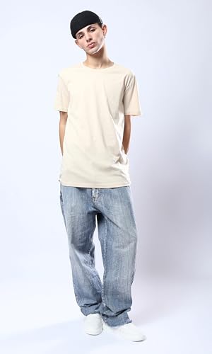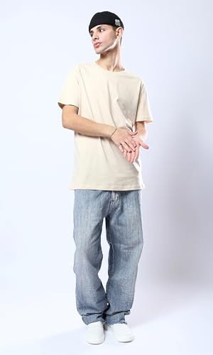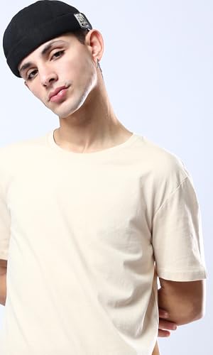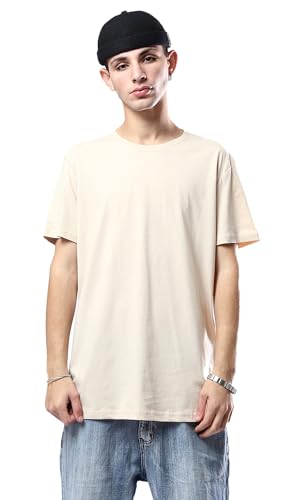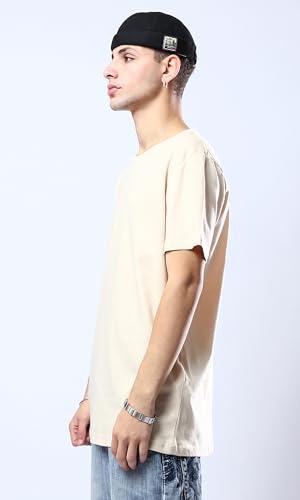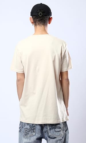 Ravin - تيشرت بيسيك عصري سادة برقبة دائرية ضيقة من ريفين للرجال بلون بيج