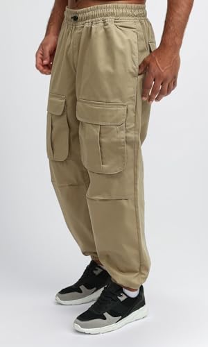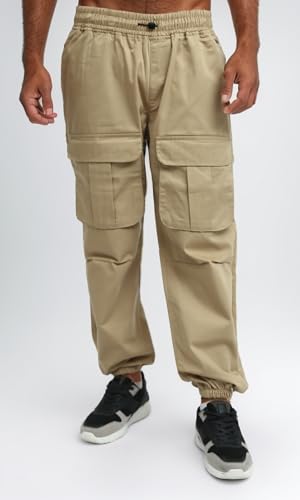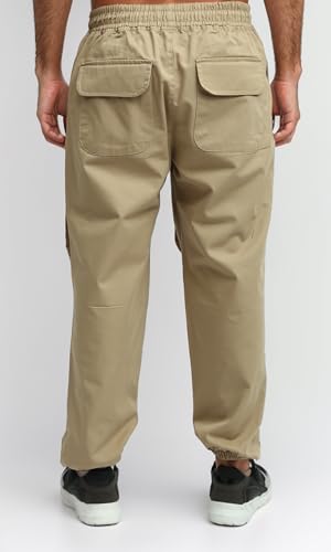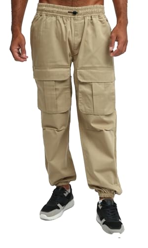 Ravin - بنطلون كارجو سادة سهل الارتداء بخصر أستك للرجال من ريفين، بيج