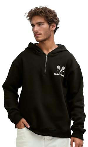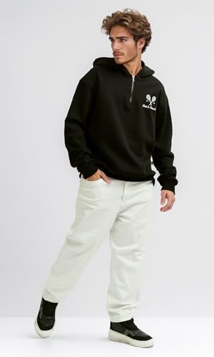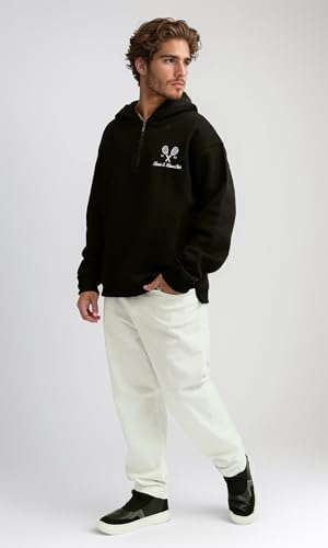 Ravin - سويت شيرت بغطاء للرأس وسوستة للإغلاق مع فتحتين جانبيتين للرجال بلون أسود من ريفين