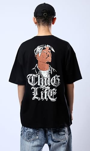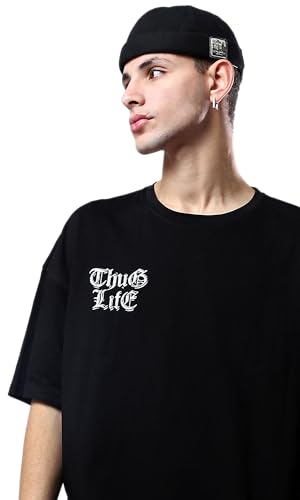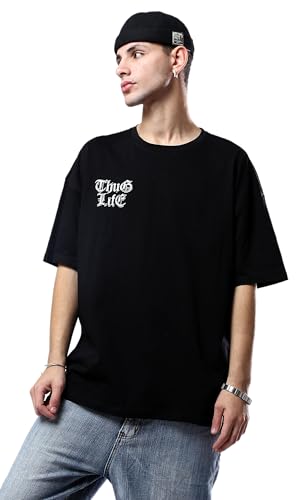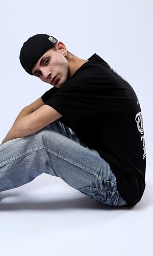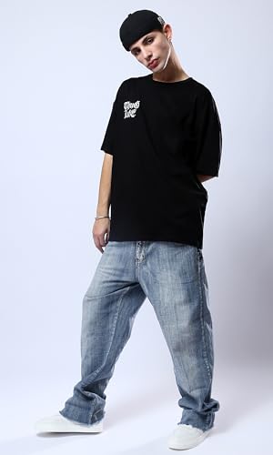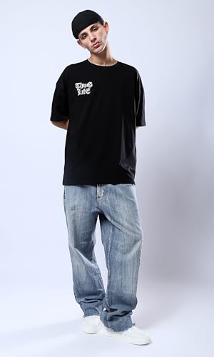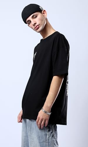 Ravin - ريفين تي شيرت اسود مريح للرجال مع طباعة امامية وخلفية عصرية