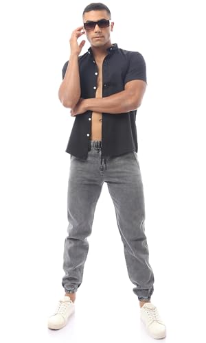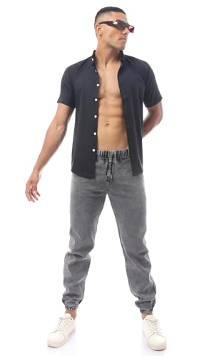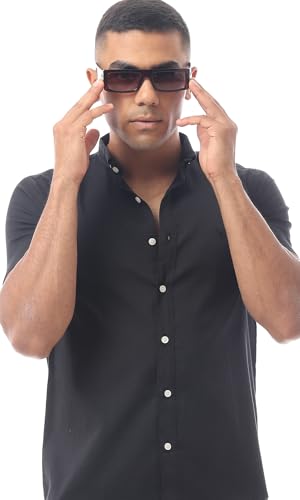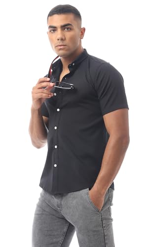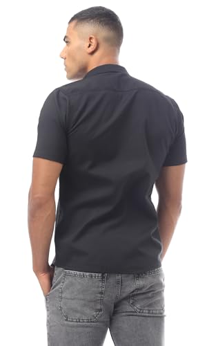 Ravin - قميص قطن عصري سادة بأكمام قصيرة للرجال من ريفين، لون أسود