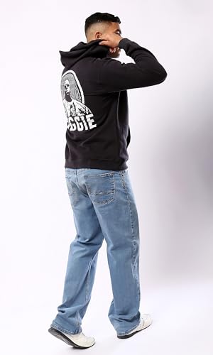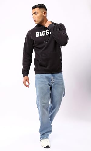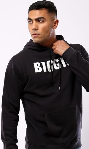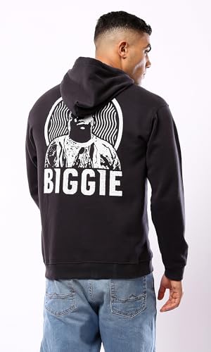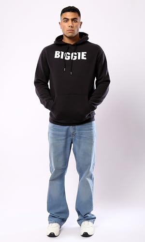 Ravin - سويت شيرت كاجوال بغطاء للرأس بطباعة كلمة "Biggie" للرجال من ريفين، أسود