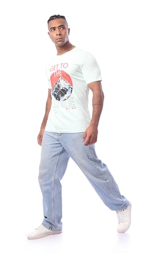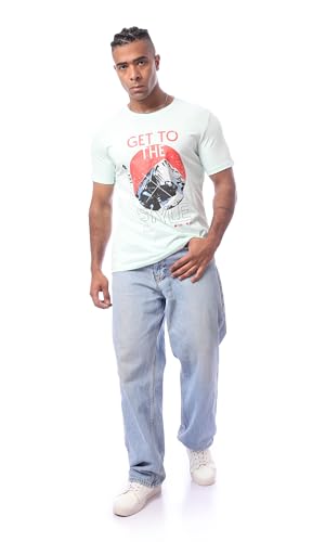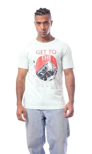 Ravin - تي شيرت عصري مطبوع بأكمام قصيرة للرجال من ريفين، لون أخضر فاتح