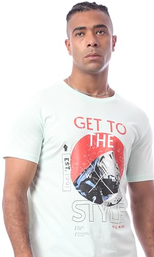 تيشيرت رائع مطبوع بأكمام قصيرة بلون أخضر فاتح