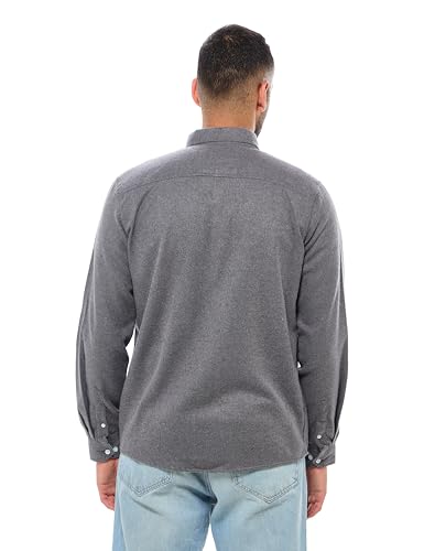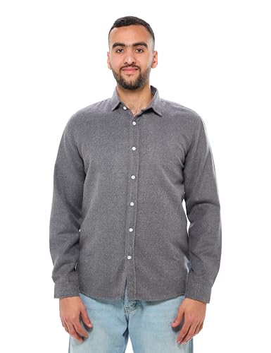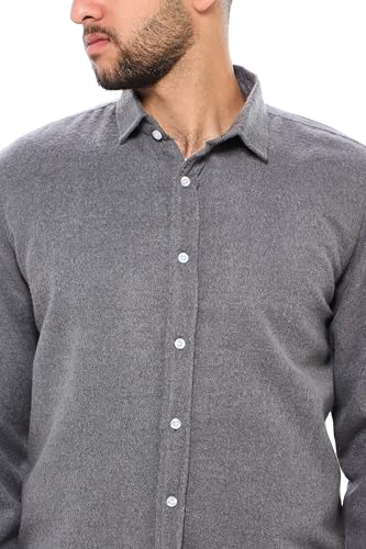 Ravin - قميص قطن بأكمام طويلة وأزرار أمامية للرجال من ريفين- رمادي غامق بتصميم حديث