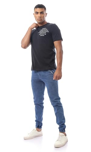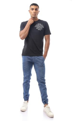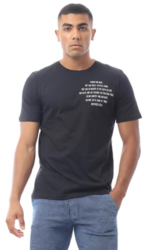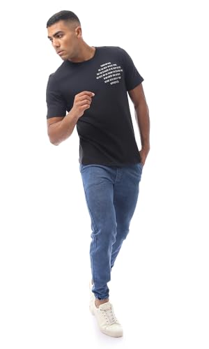 Ravin - تيشرت قطن بتصميم حديث مطبع ورقبة دائرية للرجال من ريفين، لون أسود