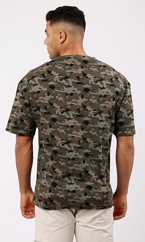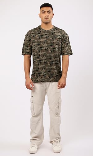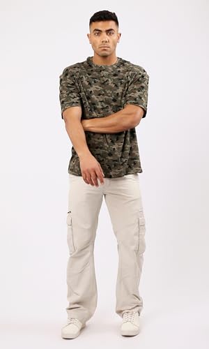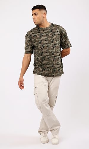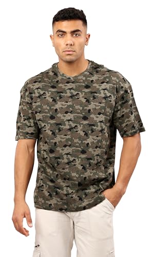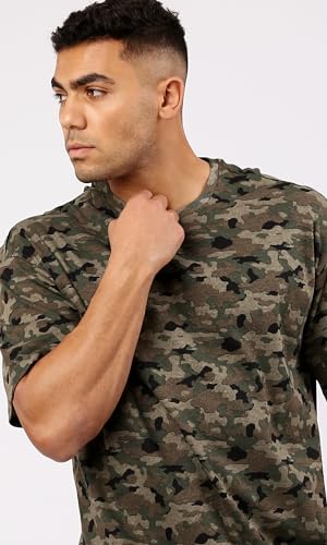 تيشرت برقبة دائرية ضيقة سهل الارتداء بلون زيتوني واسود مموه