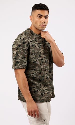 Ravin - تيشرت برقبة دائرية ضيقة بتصميم سهل الارتداء للرجال من ريفين، لون زيتي وأسود مموه
