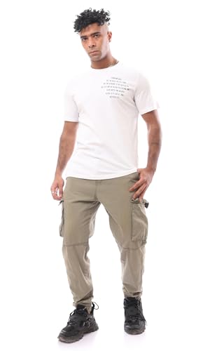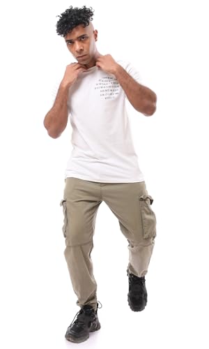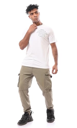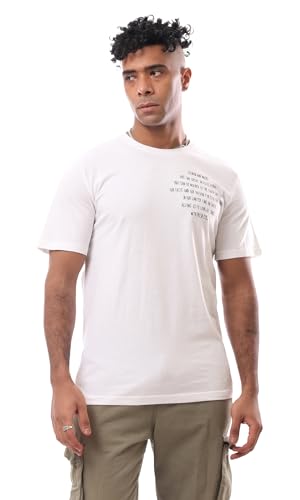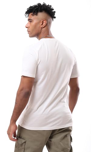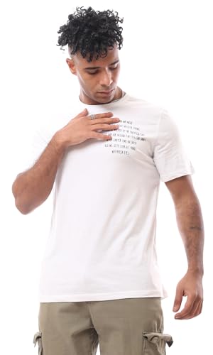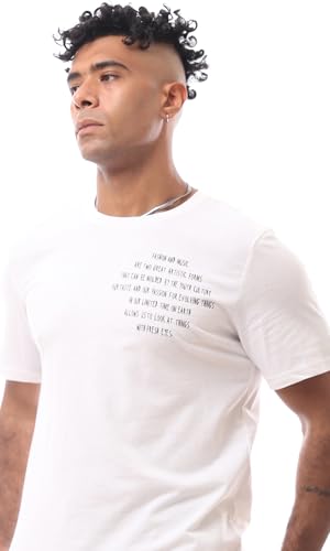 Ravin - ريفين تي شيرت كاجوال ابيض برقبة دائرية ضيقة وطباعة امامية عصرية للرجال