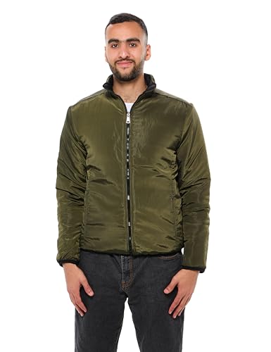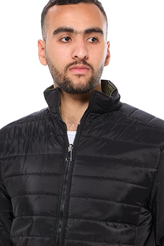 Ravin - ريفين جاكيت منفوخ سادة ومبطن بوجهين للرجال - جاكيت للرجال بلون زيتوني واسود