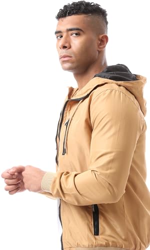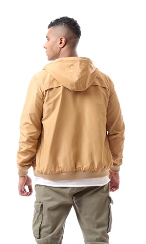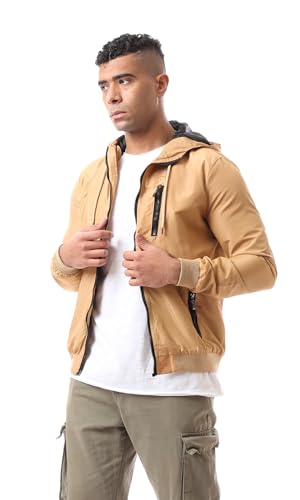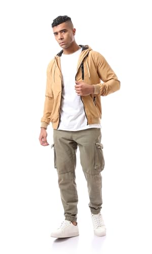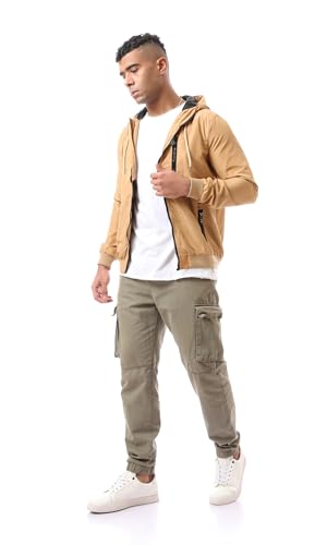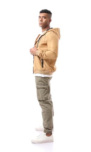 Ravin - جاكيت بومبر عصري رجالي من ريفين، بأساور عريضة مضلعة مرنة وسوستة، لون بيج غامق
