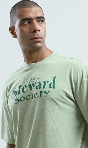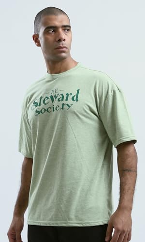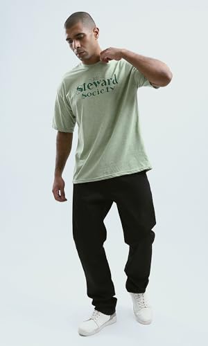 Ravin - ريفين تيشيرت صيفي باكمام الكوع بقصة مريحة للرجال - اخضر مرقش عصري