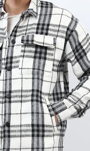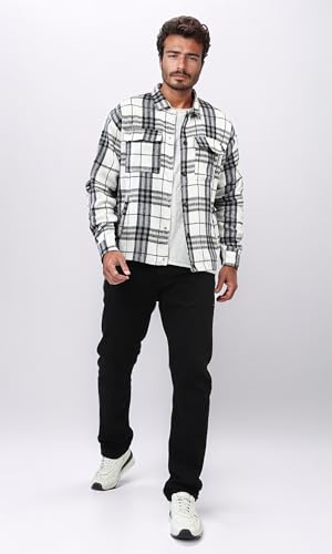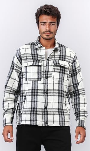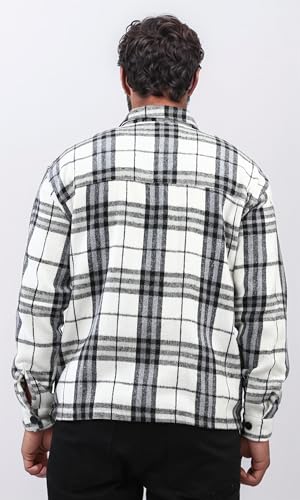 Ravin - قميص شتوي ثقيل أنيق بنقشة كاروهات وأزرار كاملة للرجال من ريفين - أبيض وأزرق