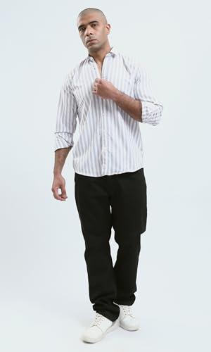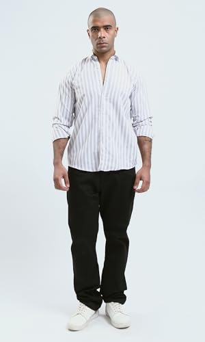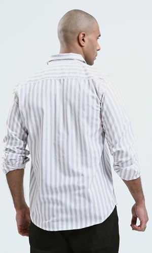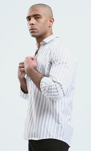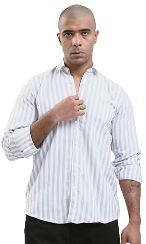 Ravin - قميص كاجوال عصري بقصة عادية وأزرار كاملة للرجال من ريفين، لون رمادي فاتح