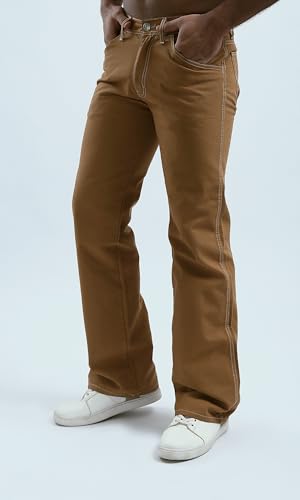 Ravin - بنطلون جينز رجالي بقصة أرجل واسعة من ريفين، لون هافان
