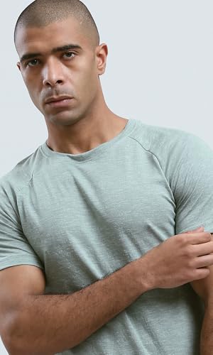Ravin - تيشرت رجالي بيسيك قصير الأكمام من ريفين، أخضر مينت مرقش، بتصميم عصري