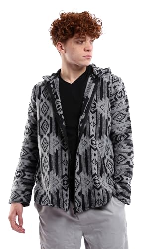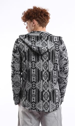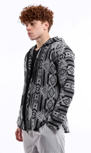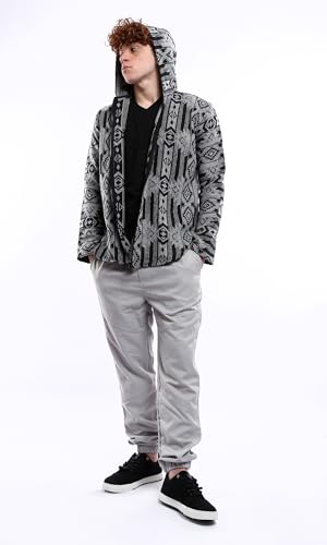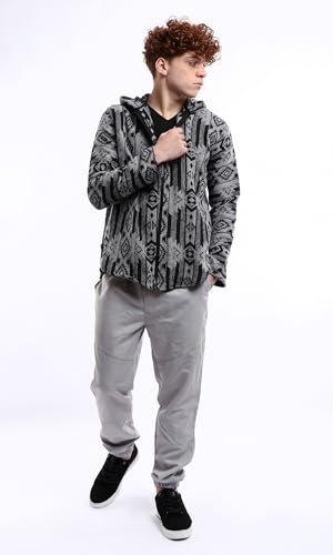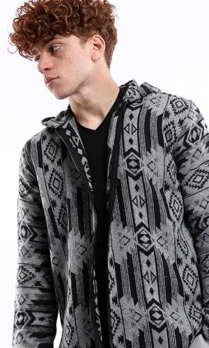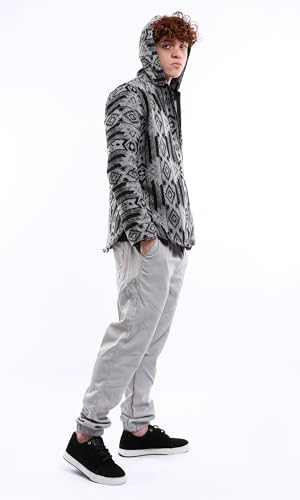Ravin - سويت شيرت منقوش بتصميم عصري بسوستة ورقبة بغطاء للرأس للرجال من ريفين، لون رمادي وأسود