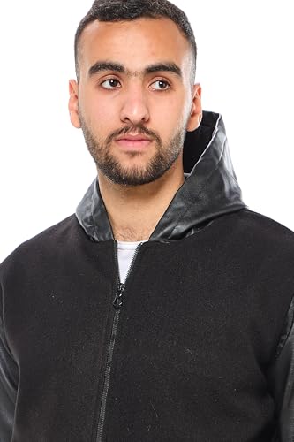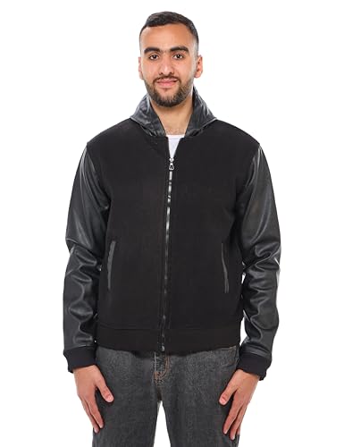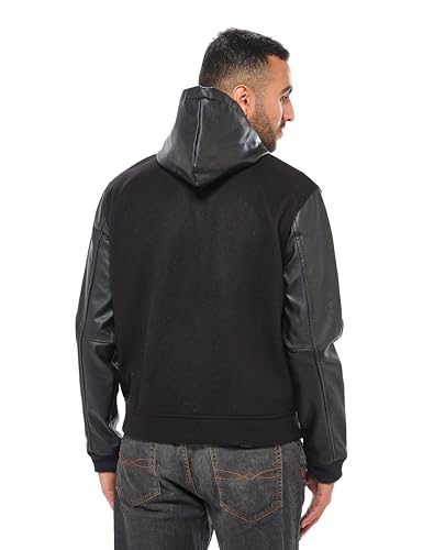 Ravin - جاكيت بيسبول للرجال بأكمام جلد وسوستة إغلاق من ريفين، أسود