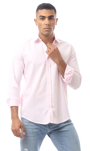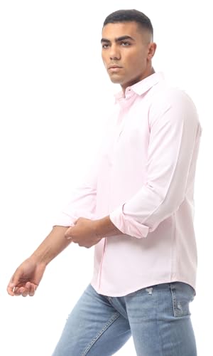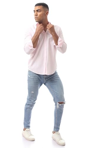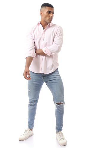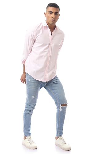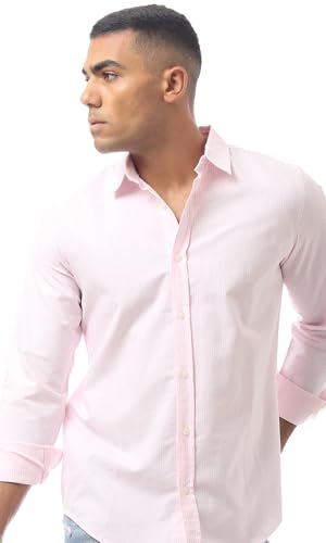 Ravin - ريفين قميص عصري مخطط باكمام طويلة للرجال بلون بينك فاتح
