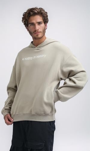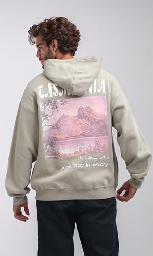 Ravin - ريفين سويت شيرت بغطاء للرأس واكمام طويلة مع ظهر مطبوع بالكامل للرجال - لون بني