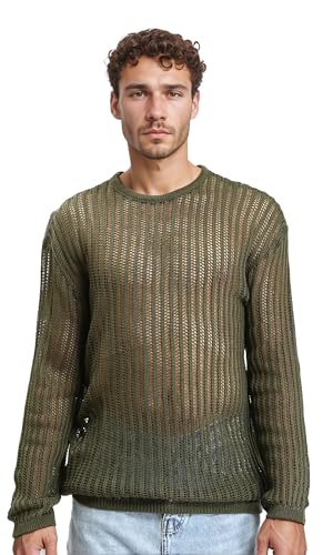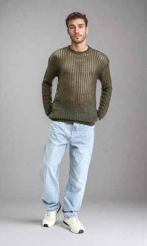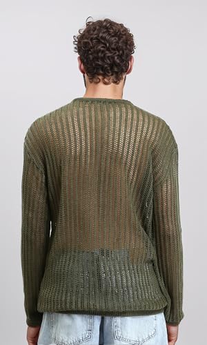 Ravin - ريفين بلوفر تريكو مخرم باكمام طويلة للرجال - زيتي غامق - R207761 Western (عبوة من قطعة واحدة)