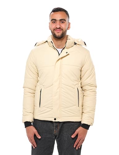Ravin - جاكيت منفوخ بأكمام طويلة وجيوب جانبية بسوستة للرجال من ريفين - جاكيت للرجال، لون بيج فاتح