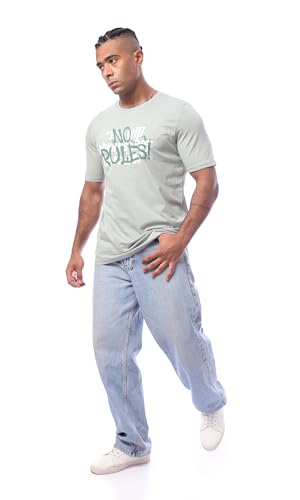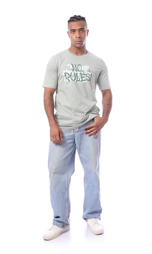 Ravin - ريفين تي شيرت عصري سهل الارتداء مطبوع عليه "No Rules" للرجال بلون اخضر مينت