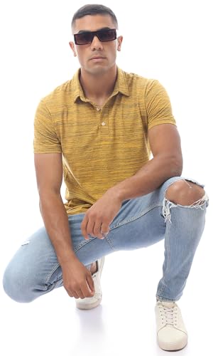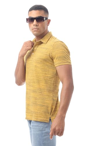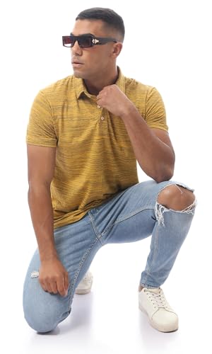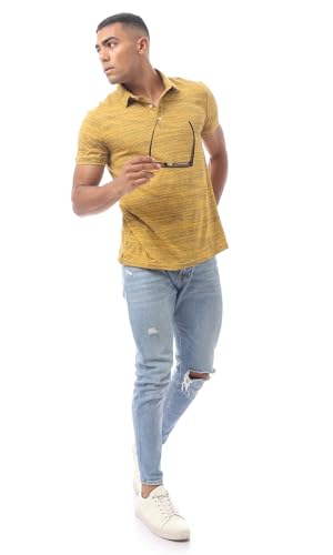 Ravin - ريفين قميص بولو عصري مخطط سهل الارتداء بازرار للرجال بلون مسطردة
