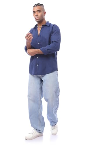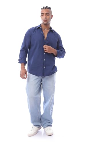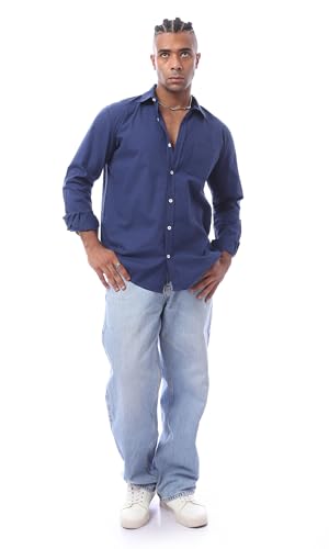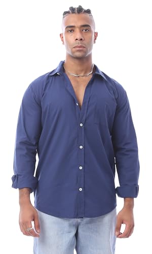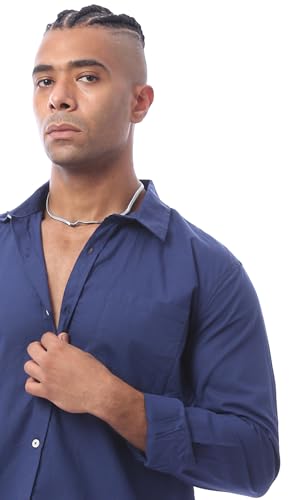 Ravin - ريفين قميص عصري باكمام طويلة للرجال بلون ازرق نابي