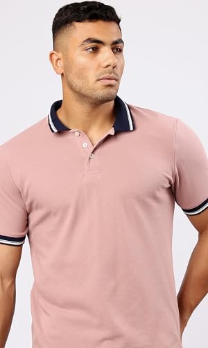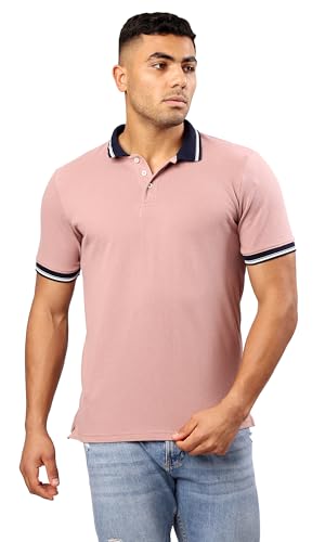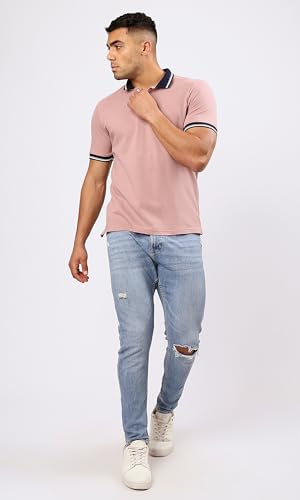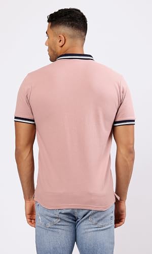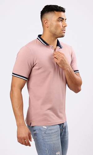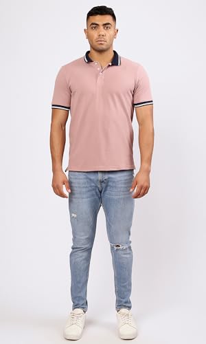 Ravin - تيشرت بولو بلون وردي نود سادة بياقة كلاسيكية وتصميم عصري للرجال من ريفين
