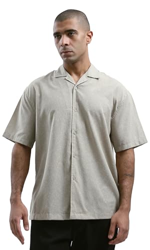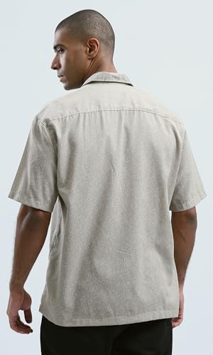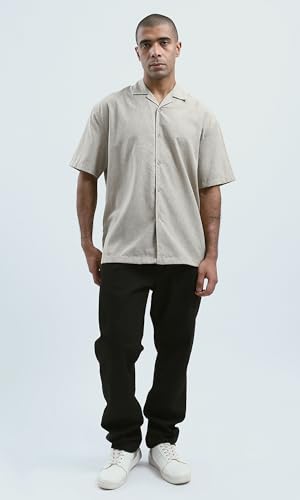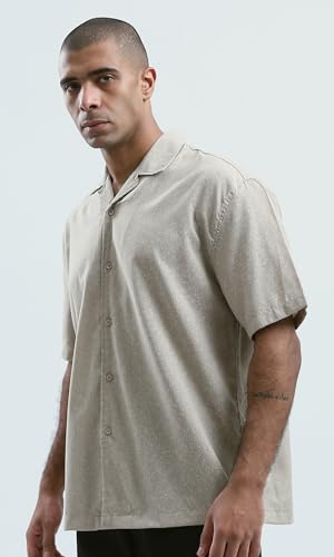 Ravin - قميص للرجال بقصة مريحة وأكمام للكوع وياقة كلاسيكية عصرية من ريفين - لون زيتي