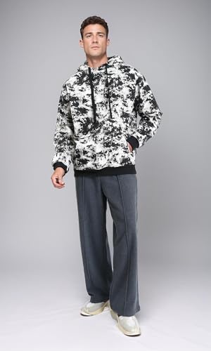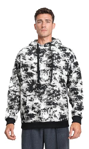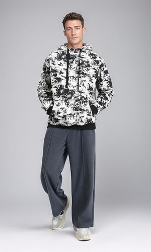 Ravin - سويت شيرت R214519 بغطاء رأس منقوش سهل الارتداء مع جيب كانجارو متصل للرجال من ريفين، أسود وأبيض
