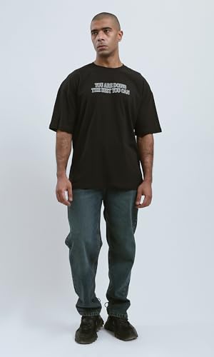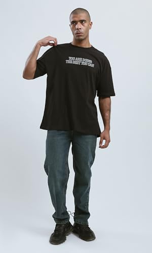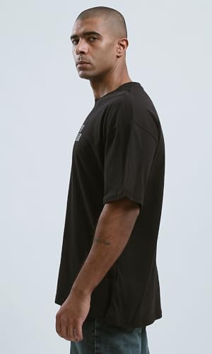 Ravin - تيشيرت رجالي مطبوع بأكمام حتى الكوع من ريفين بتصميم سهل الارتداء باللون الأسود