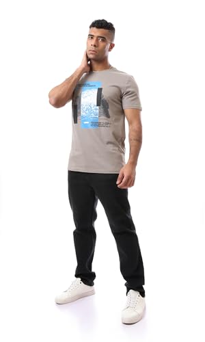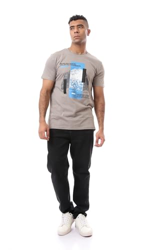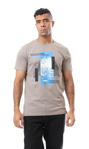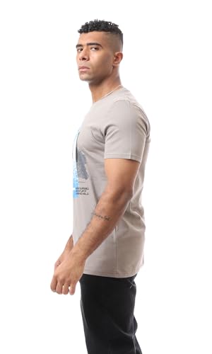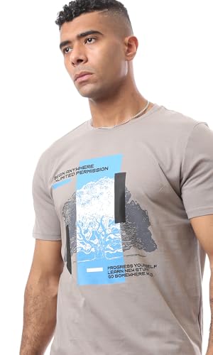 Ravin - ريفين تيشرت رجالي مريح سهل الارتداء بنمط مطبوع - لون اسمنتي عصري