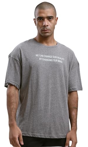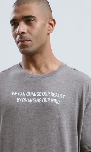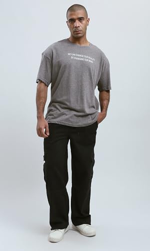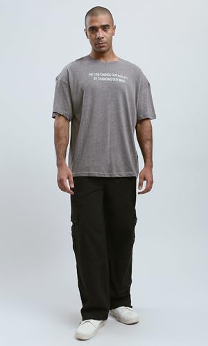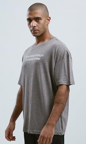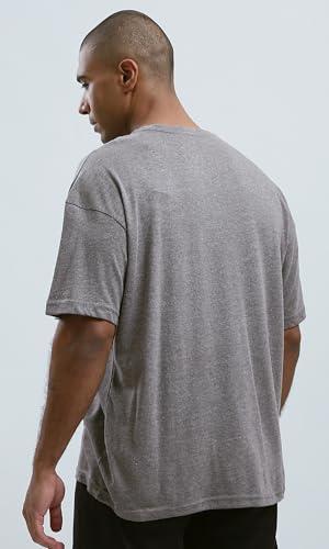Ravin - تيشرت للرجال من ريفين بتصميم حديث مريح بطباعة أمامية - لون رمادي غامق بنمط مرقش