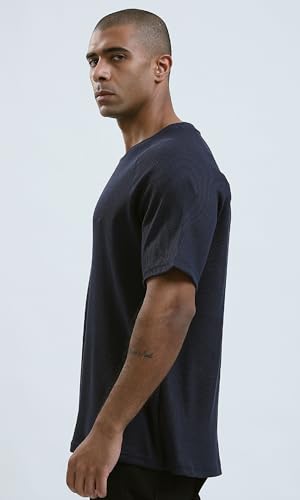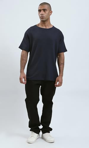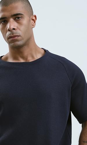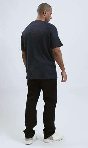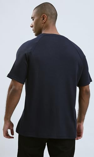 Ravin - ريفين تيشيرت كاجوال عصري بقصة مريحة واكمام للكوع للرجال بلون كحلي داكن