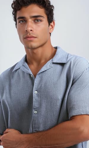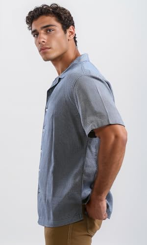 Ravin - ريفين قميص عصري بقصة مريحة واكمام للكوع للرجال بلون كحلي
