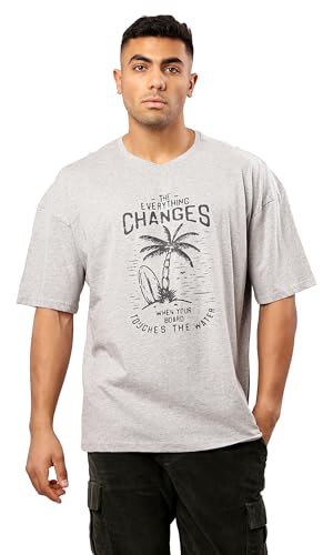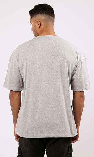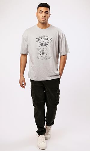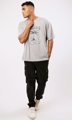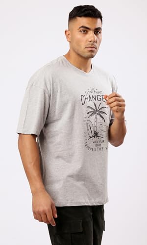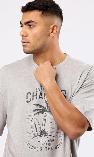 Ravin - تيشرت من ريفين رمادي مرقش بقصة مريحة مع طباعة أمامية للرجال