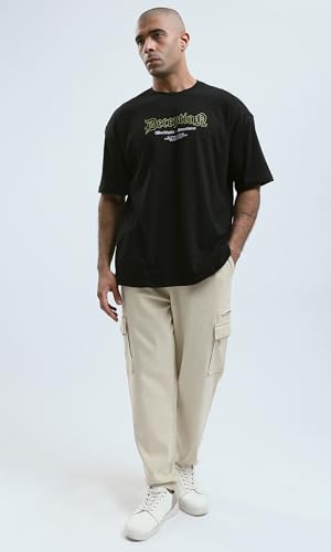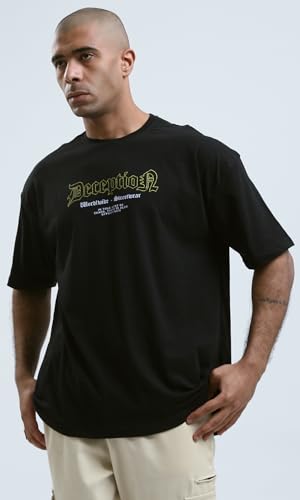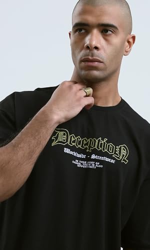 Ravin - تيشرت رجالي عصري بتصميم مطبوع وقصة مريحة وأكمام للكوع من ريفين، لون أسود